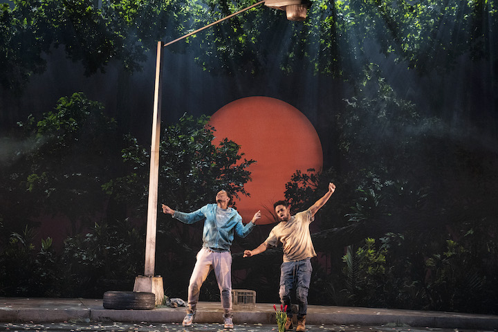 As Broadway reopens, it seems fitting that the first new play, Pass Over, tackles issues of plague, isolation, and racism we all weathered in the pandemic. Certainly, it is fitting that this intense, intermission-less (mostly) two-hander by award-winning writer Antoinette Chinonye Nwandu plays in The August Wilson Theatre, named for the prolific playwright of color who requested no white directors head major productions of his work.