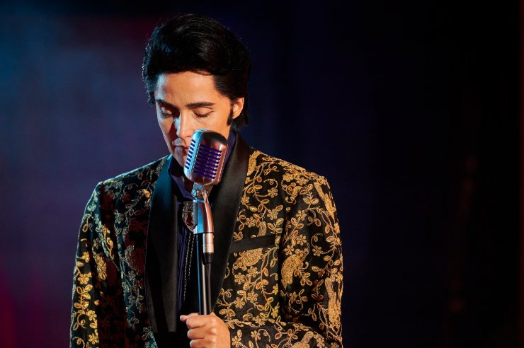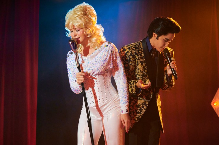 Red takes the stage to do a bit of banter with the gays in the crowd, and attracts the attention of local talent scout, Teeth (Celeste Barber). When Red wows as Dolly, Elvis takes note—and takes her home! (Byrne and Boylan said it wasn’t too-too weird making out with their best friend.)