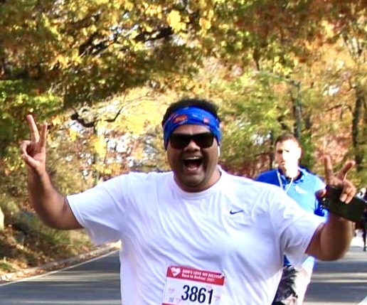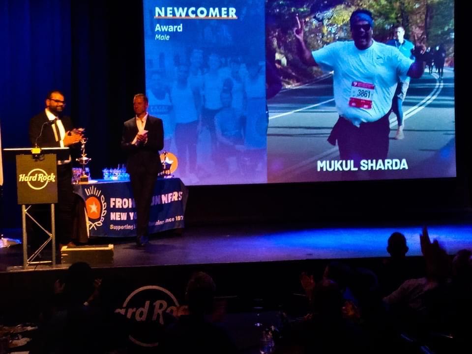 MS: And I was convinced that this is not the end. This is just the beginning. Before this, I had no gay friends and suddenly people are cheering for me. So, after the 5K I tried a 10k and then it was winter with vengeance, which I love being a big guy. It’s easier for me to survive in winters than in summers. Everyone that I’ve ever seen has been this cool, slim runner. I don’t see people of color and people of big size being the poster people for running, but I run as much as they do, and this is about inclusion of people of color. And people are encouraging body positivity. Finally, I went for my 10-mile run, and that was my last run in New York. At the end of the year, I was surprised at the Front Runners Gala when they gave me the Newcomer of the Year award.