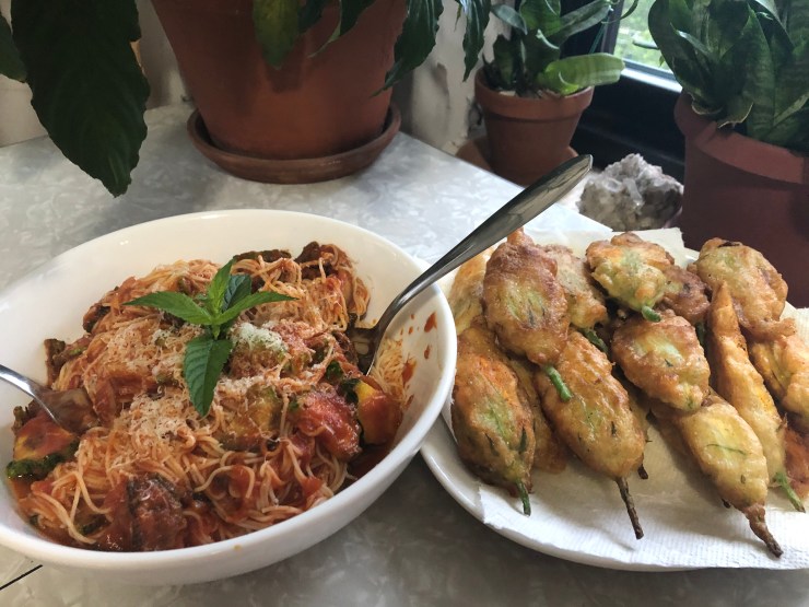Stuffed Zucchini Blossoms with Costata Romanseco Pasta